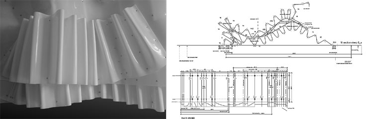 This seating landscape was developed via a simple technique of folding. Folds were overlaid in such a way that required stiffness was achieved where necessary. Flexibility was created by leaving several layers of folds unattached. This way they could move dynamicly, adaptin g to the person body profile and mass, as required. Folds were so thus used for structural purposes as well as ergonomic and esthetic ones.
